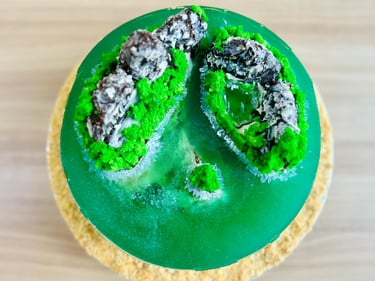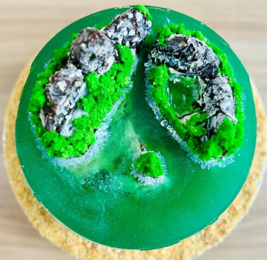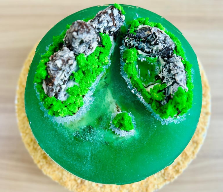 Step into paradise with our stunning Island Escape Cake — a masterpiece that brings the beauty of nature right to your dessert table. This show-stopping creation features crystal-clear edible "waters," vibrant green sponge "foliage," and rocky chocolate "cliffs," all meticulously crafted to resemble a lush tropical island. Whether you’re celebrating a beach-themed party, a destination wedding, or simply want a slice of serenity, this cake offers a delicious getaway with every bite. Dive into a world where imagination meets indulgence!